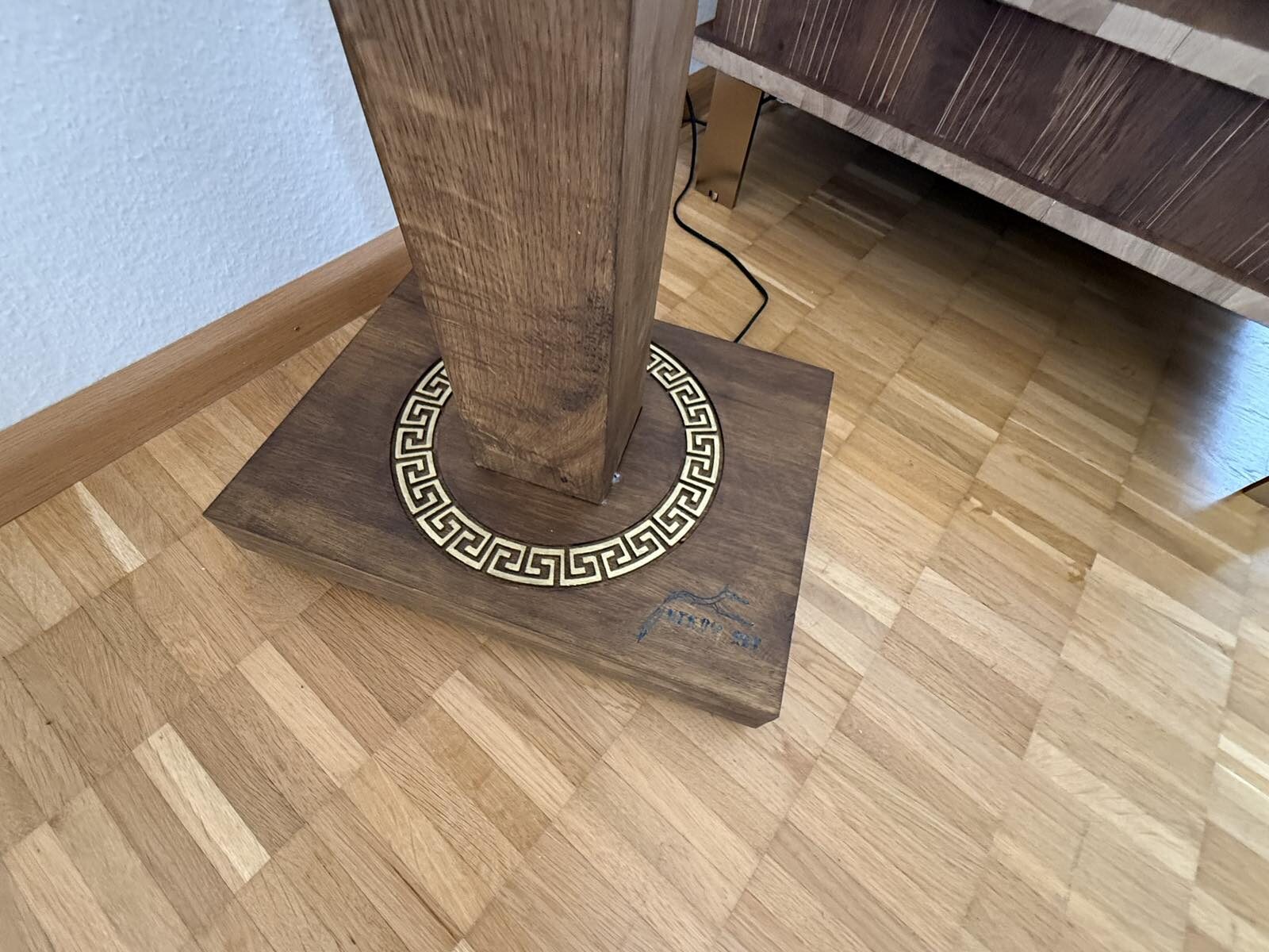 - Diese handgefertigte Designleuchte verbindet traditionelles Holzhandwerk mit moderner Lichttechnologie. Das Objekt wird vollständig aus massiver europäischer Eiche gefertigt und sorgfältig von Hand geschliffen und geölt. Dadurch kommt die natürliche Maserung des Holzes besonders schön zur Geltung und verleiht der Leuchte eine warme und elegante Ausstrahlung.