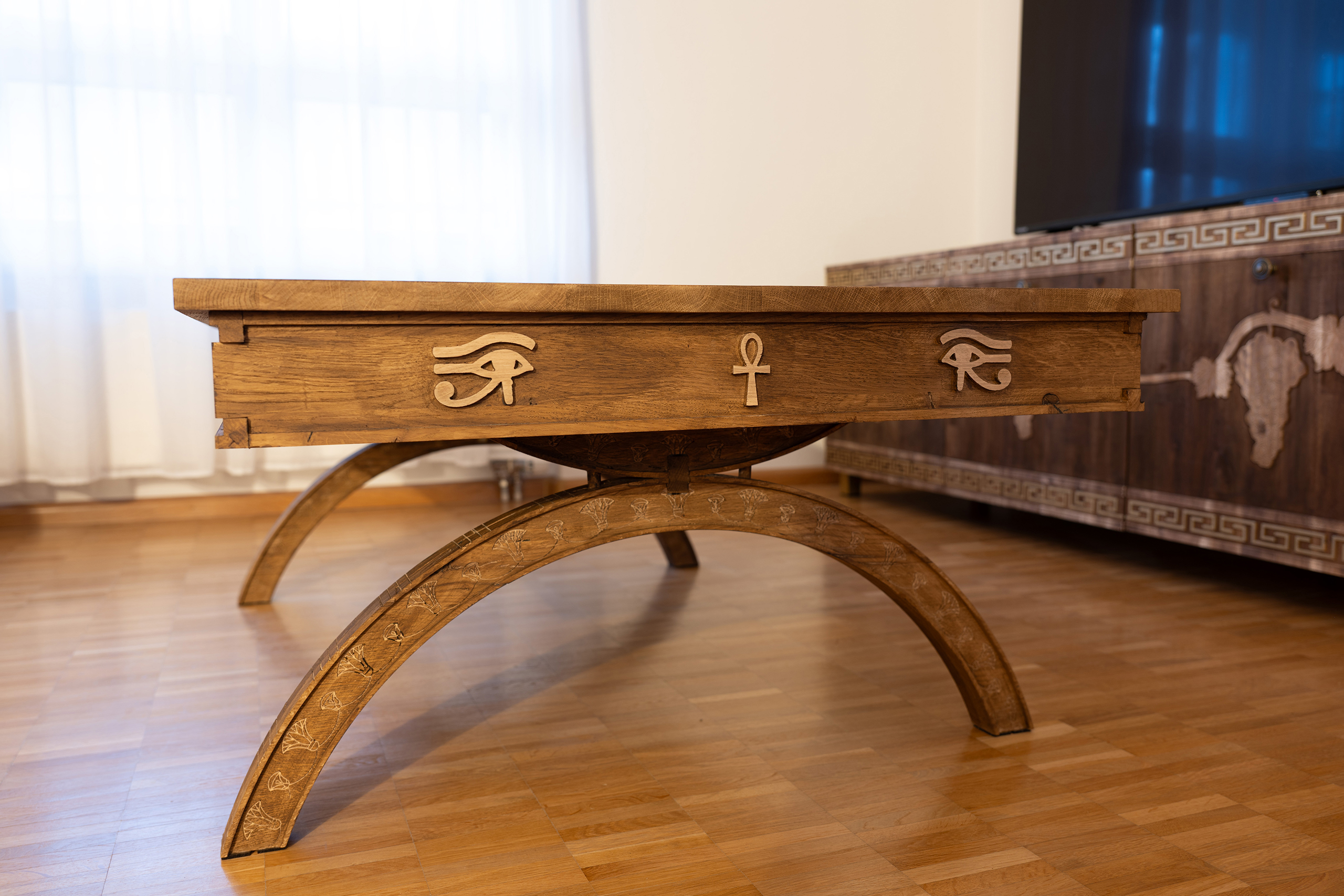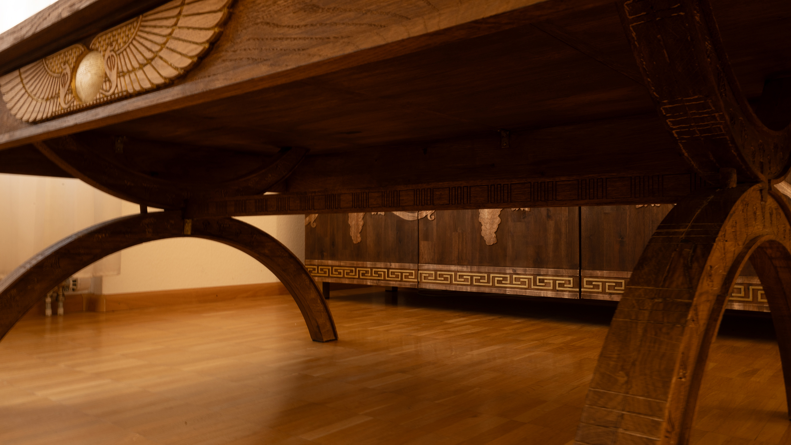 • Es richtet sich an Sammler und Kenner, die Einzigartigkeit, handwerkliche Präzision und geistige Substanz in der Materie erkennen. Als Unikat verbindet dieses Werk Kunst, Mythologie und Funktion zu einer Einheit – ein Objekt, das zugleich verwendet und kontempliert wird.